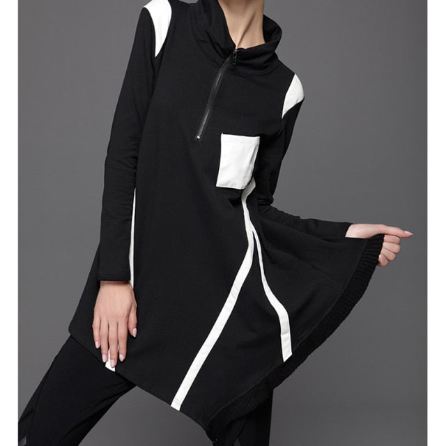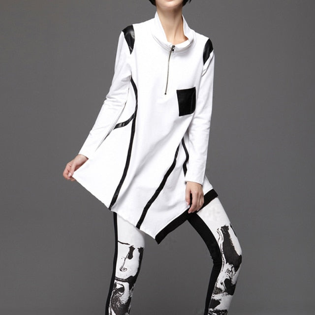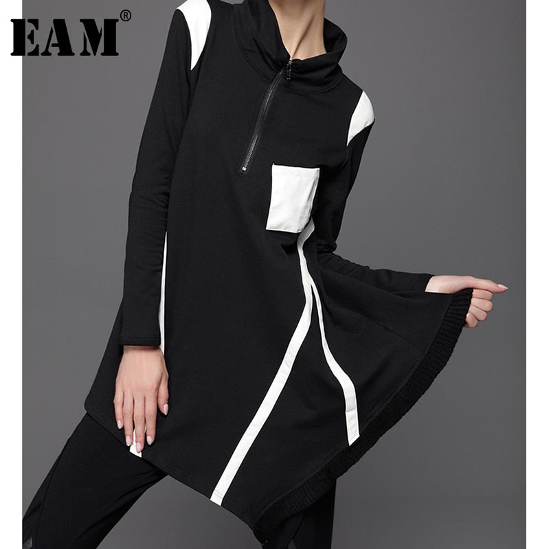 EAM Designer Damen Sweatshirt, halblang und lang, mit assymmetrischem Schnitt, Markenartikel in zwei eleganten Farbvarianten. Aus Baumwolle, für Frühling und Herbst.