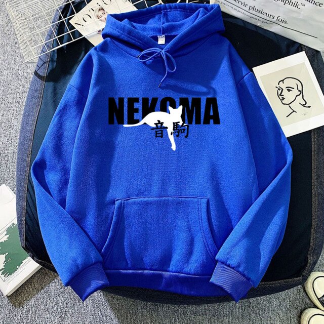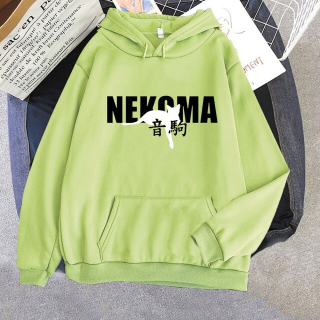 Unisex Sweatshirt in fröhlichen Farben, mit Bauchtasche, Kapuze und Kordelzug, aus Baumwollmischung. Für den Alltag, im Frühling und Herbst. Mit Schriftprint und Zeichentrickfilm-Motiv.