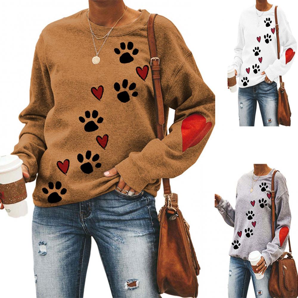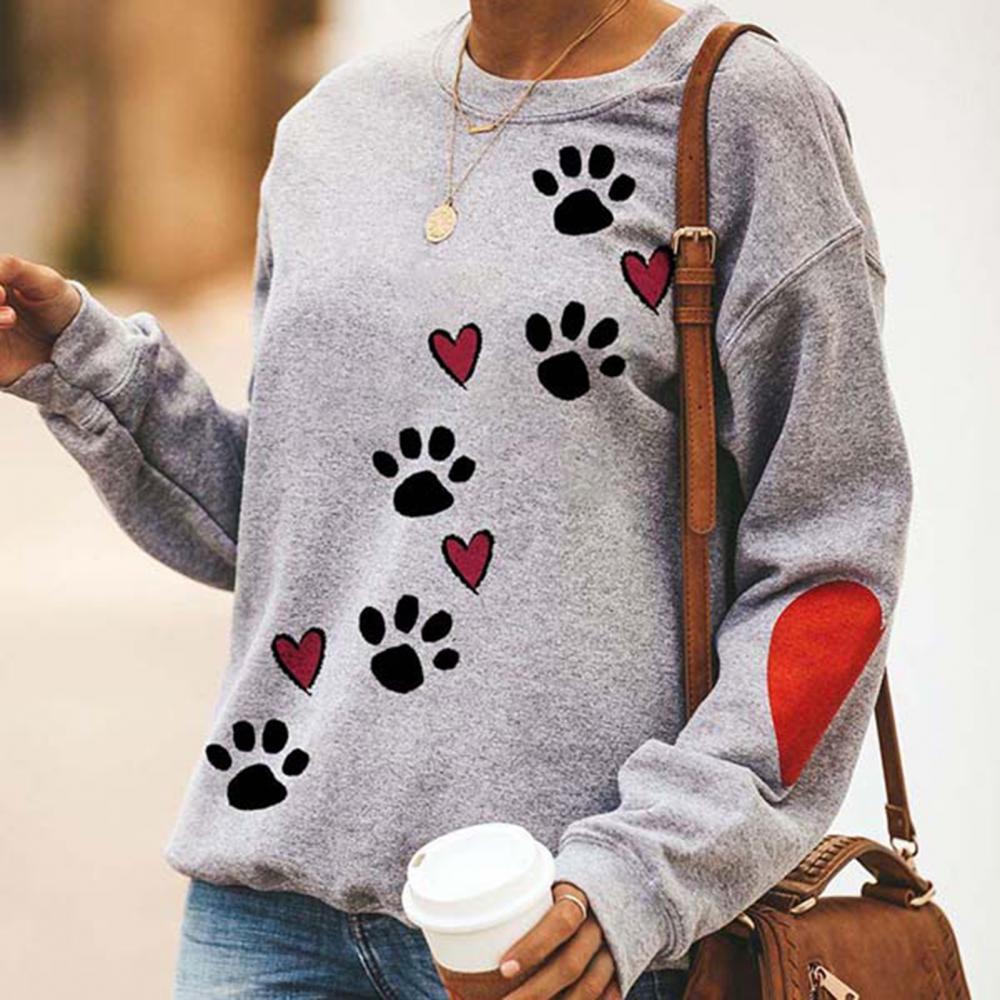 BeschreibungLässiger Damen Sweatshirt mit PfotendruckStil: LässigÄrmelform: NormalÄrmellänge (cm): VollMaterialzusammensetzung: KunstfaserMaterial: PolyesterKapuze: NeinStoffgehalt: 96 % und mehrStoffart: WollstoffKragen: O-AusschnittKleidungslänge: RegulärSize Details:[Our Size M] Bust: 104cm/40.9", Shoulder: 58cm/22.8", Sleeve: 56cm/22", Length: 68cm/26.8"...