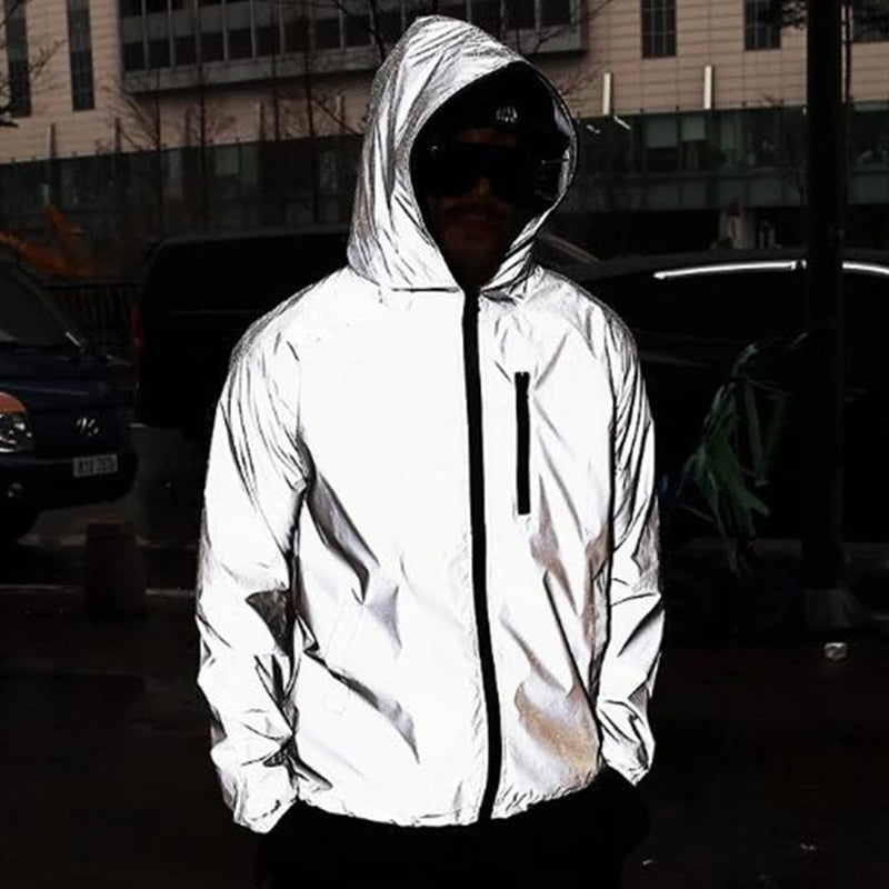 Lichtreflektierende Fahrradjacke: Windbreaker mit lässiger Hip-Hop-Kapuze