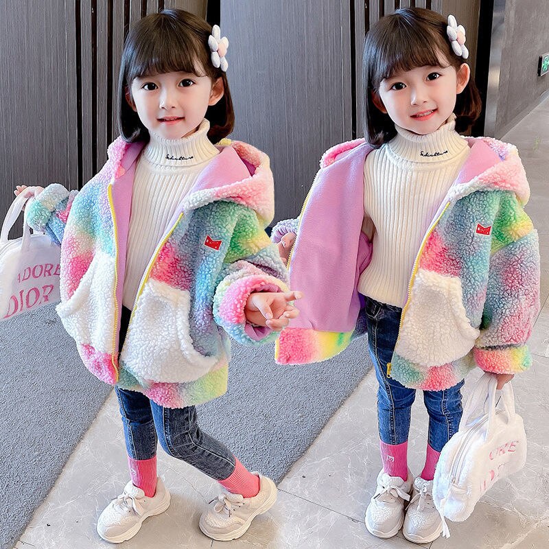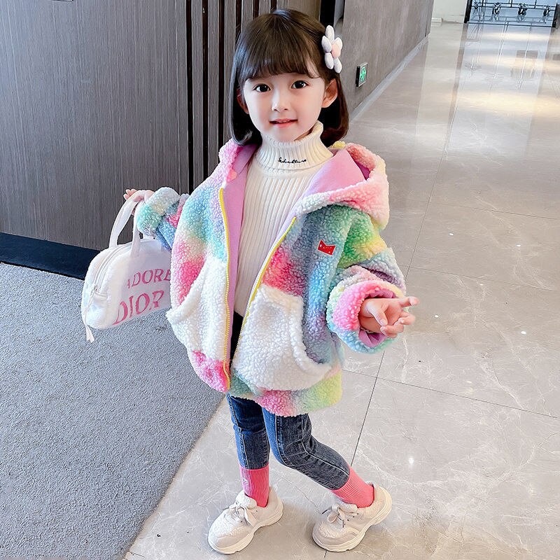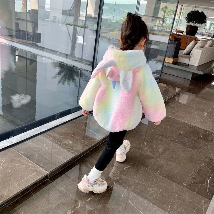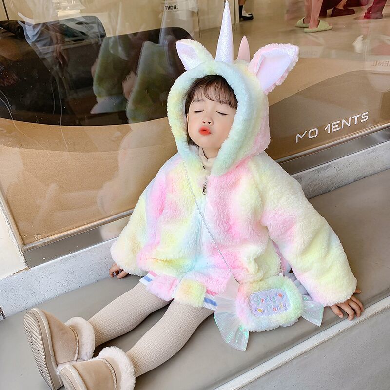 Regenbogen Mädchen Reißverschluss Hoodie Lammhaar Batik Sweatshirt kawaii Straßenmädchen Bluse Ohren lange Ärmel Jacke Einhorn Hip Hop Mantel