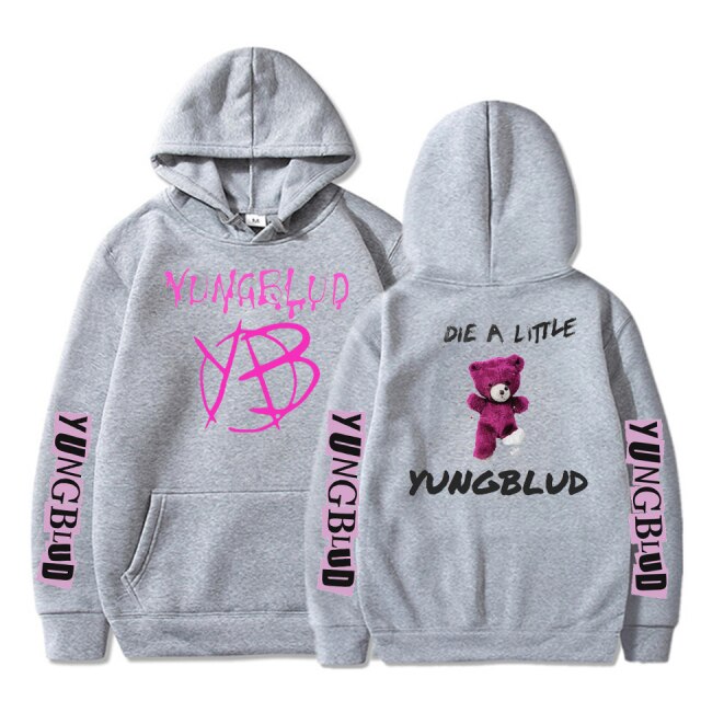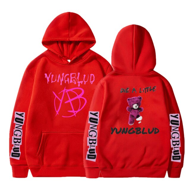 Modische Damen und Herren Hoodie, Teenager Style, mit passenden Schrift- und Bilddruck (Yung Blood), in Schwarz, Weiß, Pink, Rot und Blau, für Frühling und Herbst