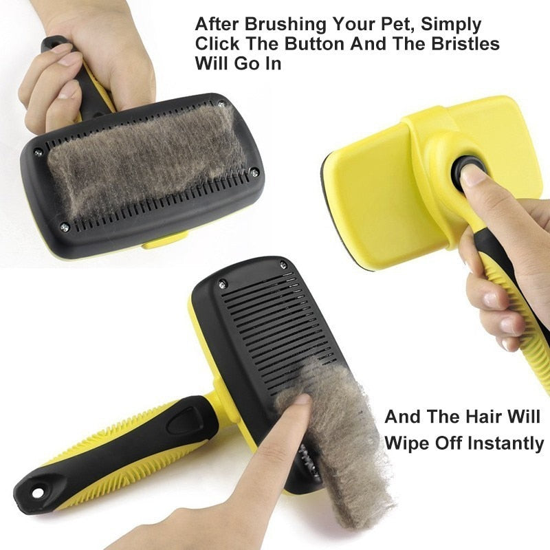 LEICHT ZU REINIGEN: Wenn Sie mit dem Bürsten Ihres Haustieres fertig sind, klicken Sie einfach auf den Knopf und die Borsten ziehen sich wieder in die Bürste zurück, wodurch es super einfach ist, alle Haare aus der Bürste zu entfernen, damit sie für den nächsten Gebrauch bereit ist.